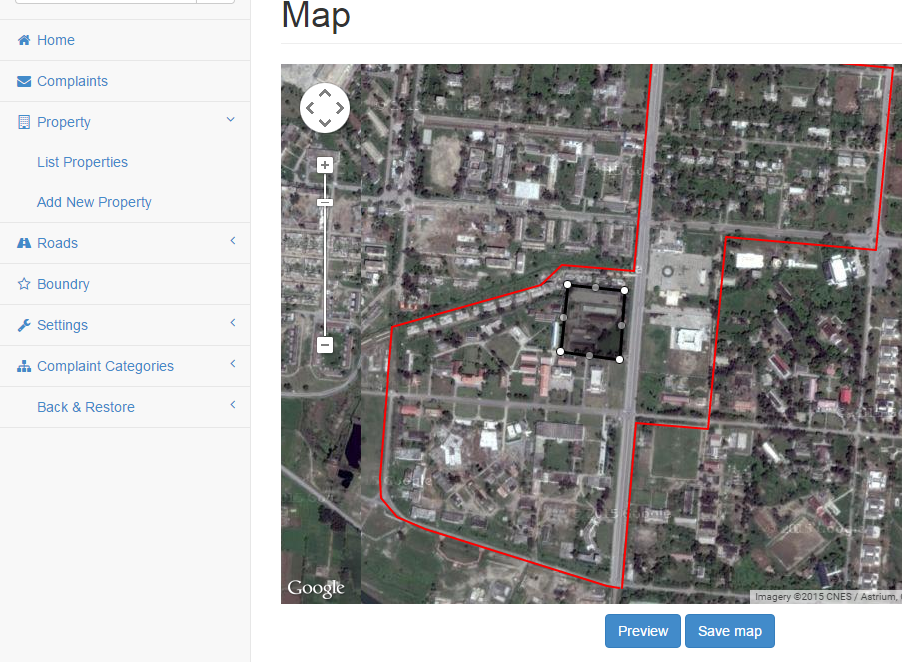 all the properties (houses,schools, parks etc) were drawn on map by administrator.